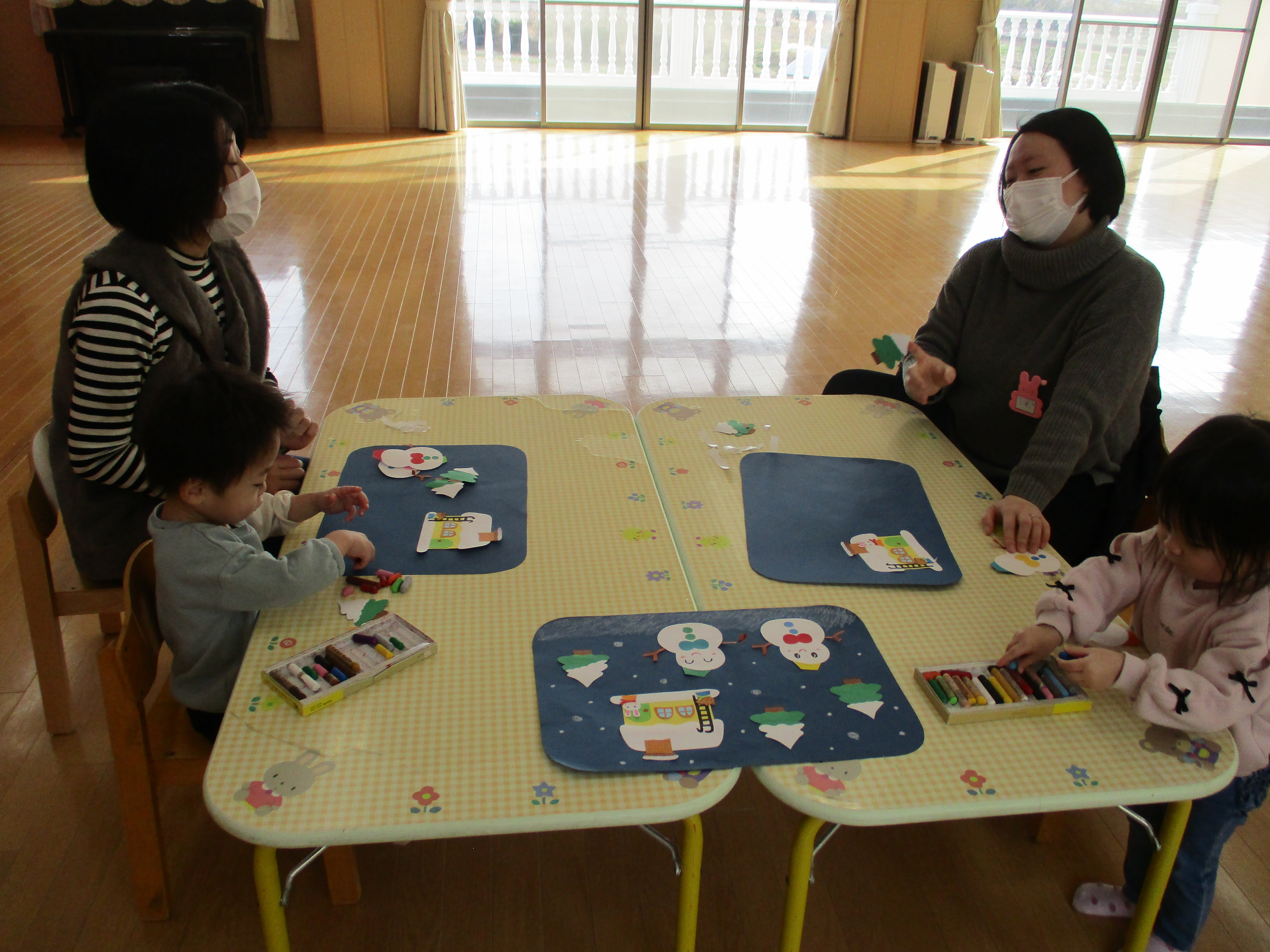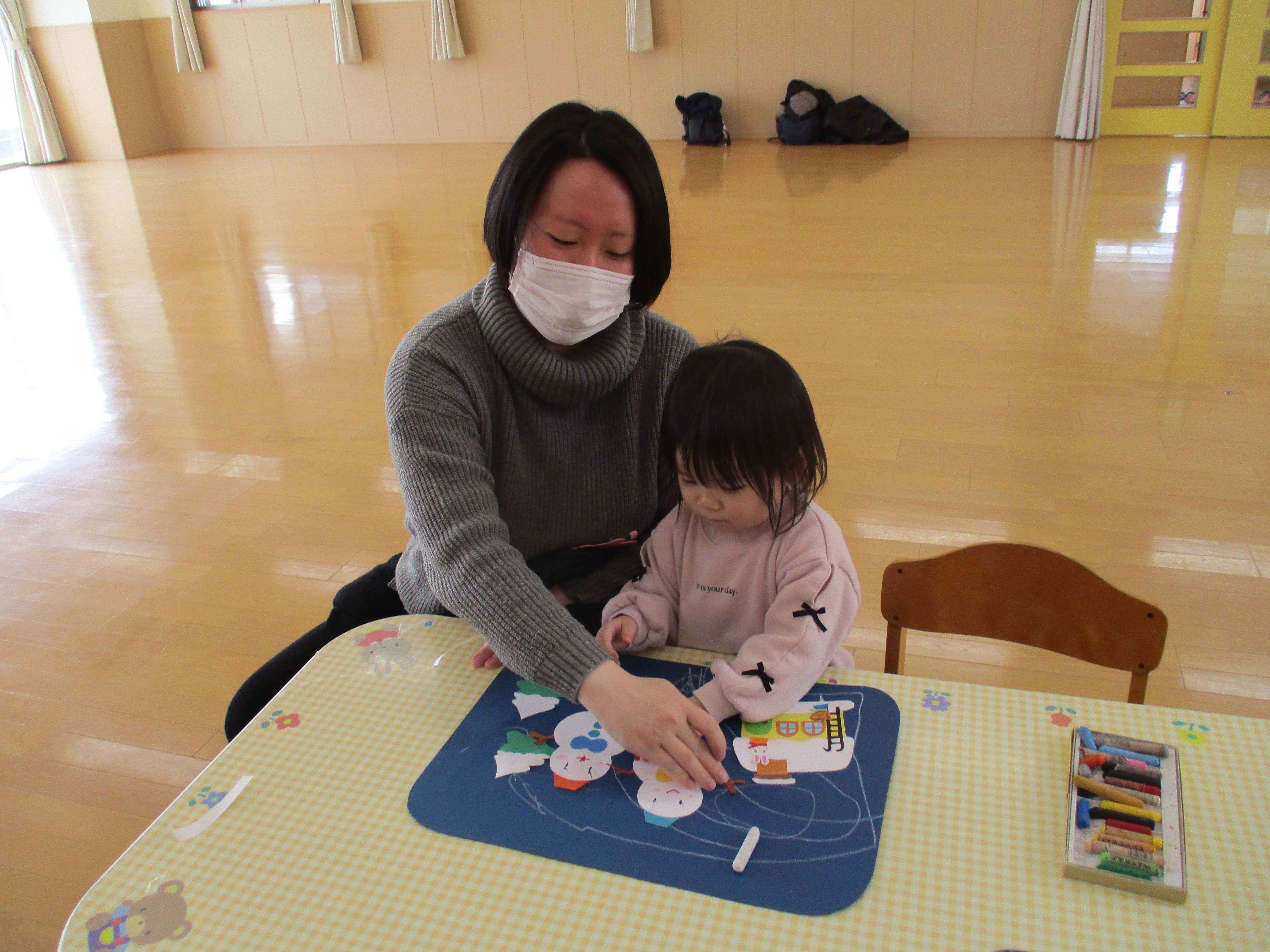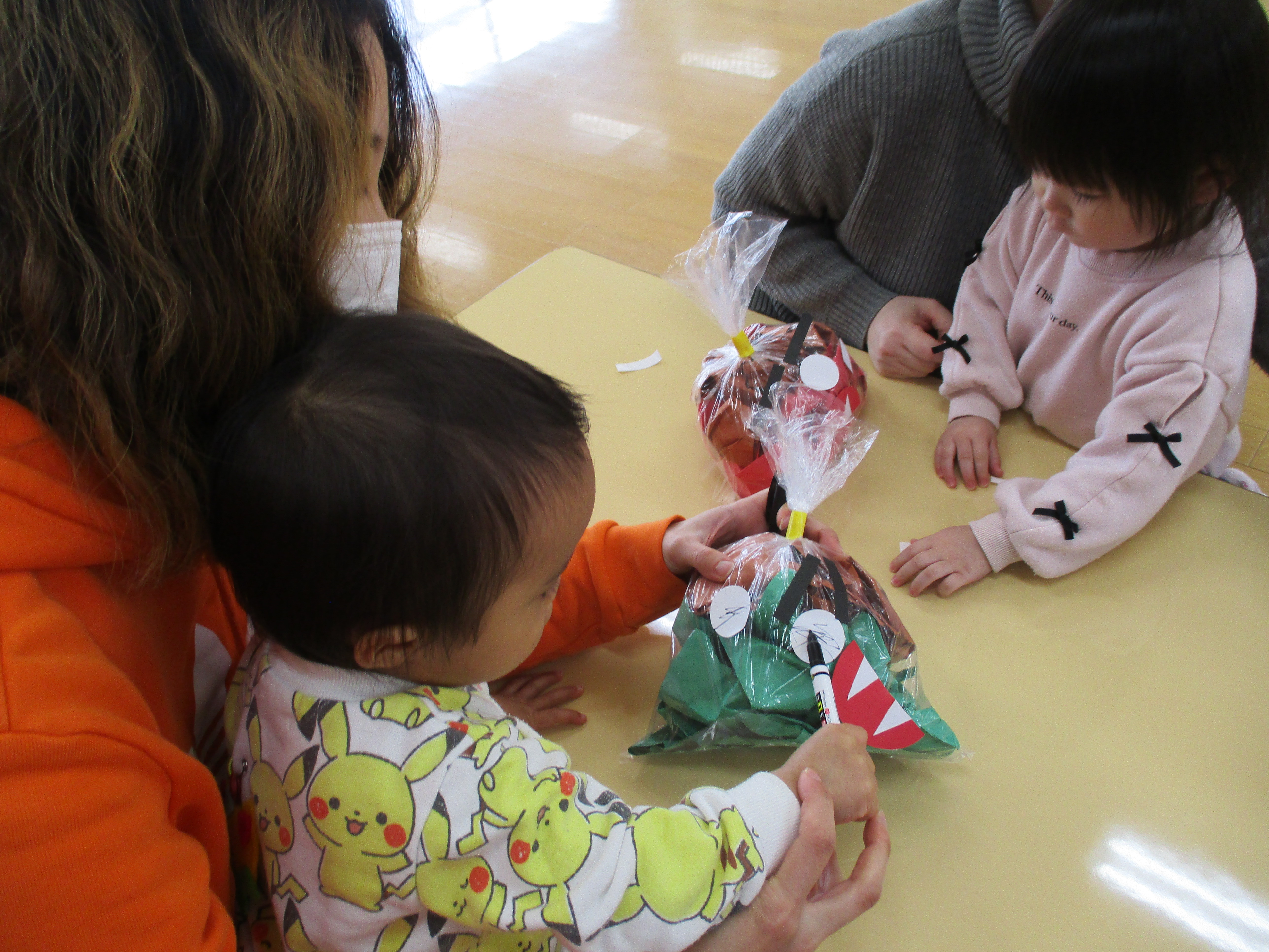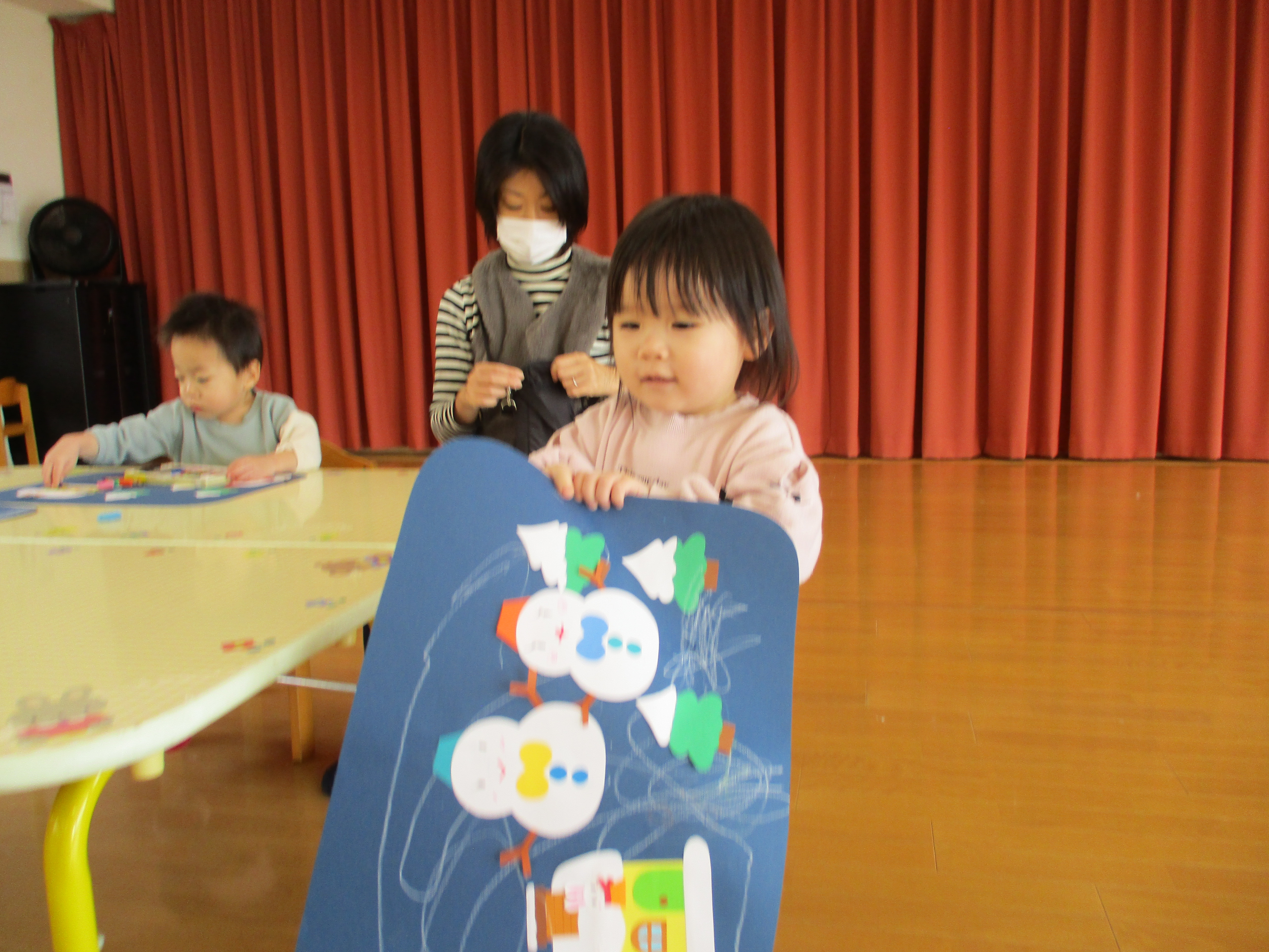 - 毎回 手遊び、絵本又は紙芝居の読み聞かせ、おやつがあります。