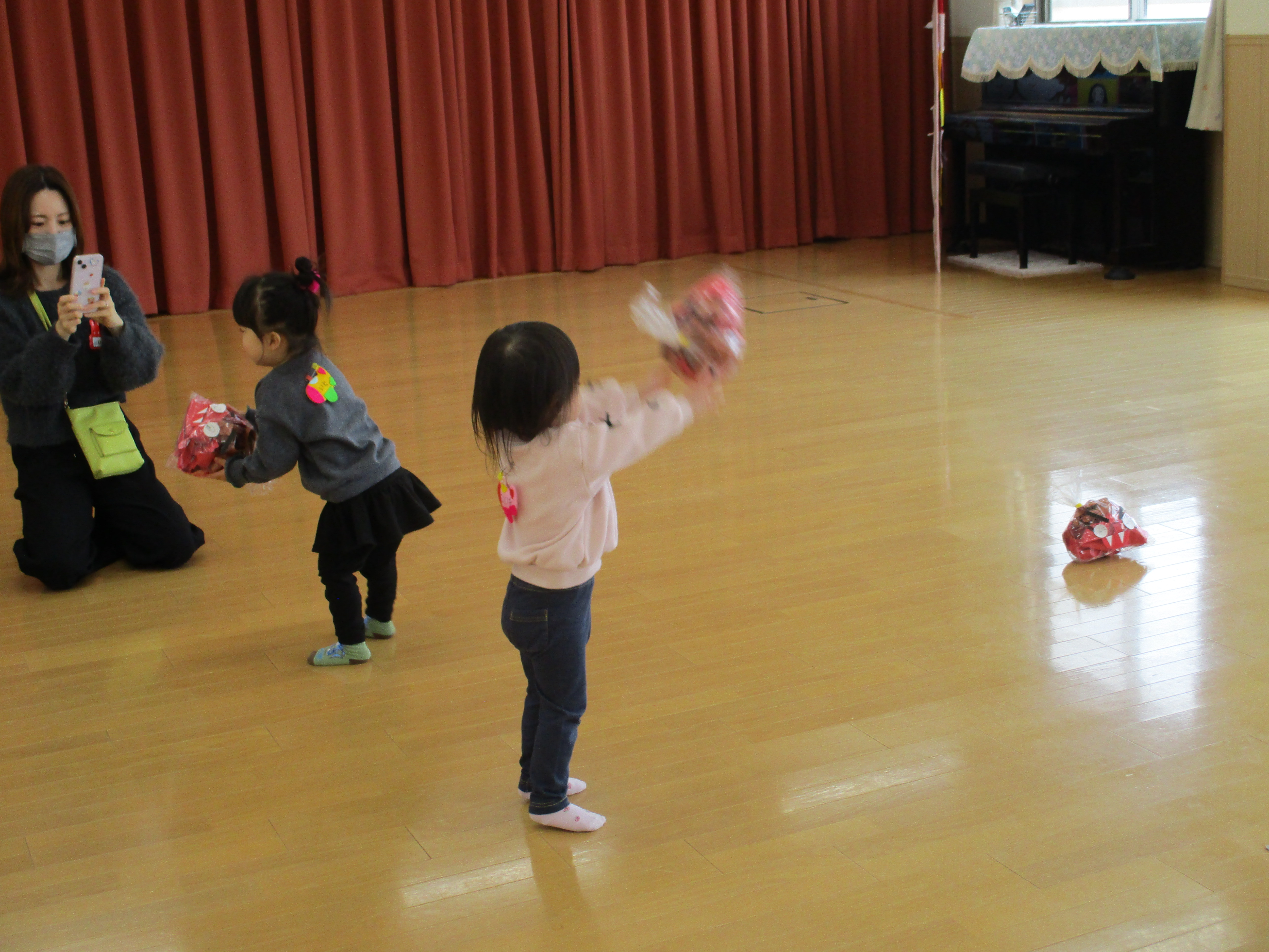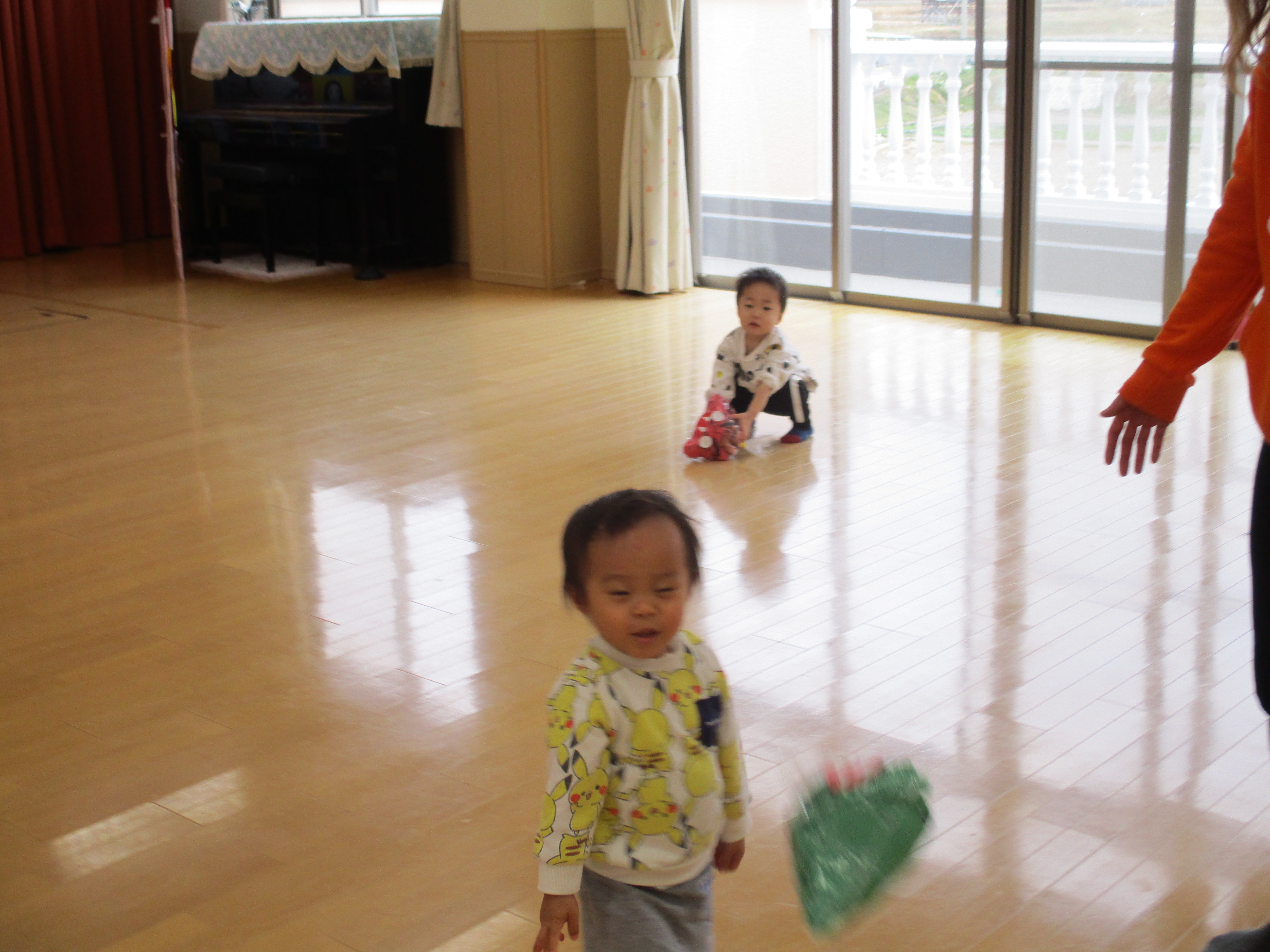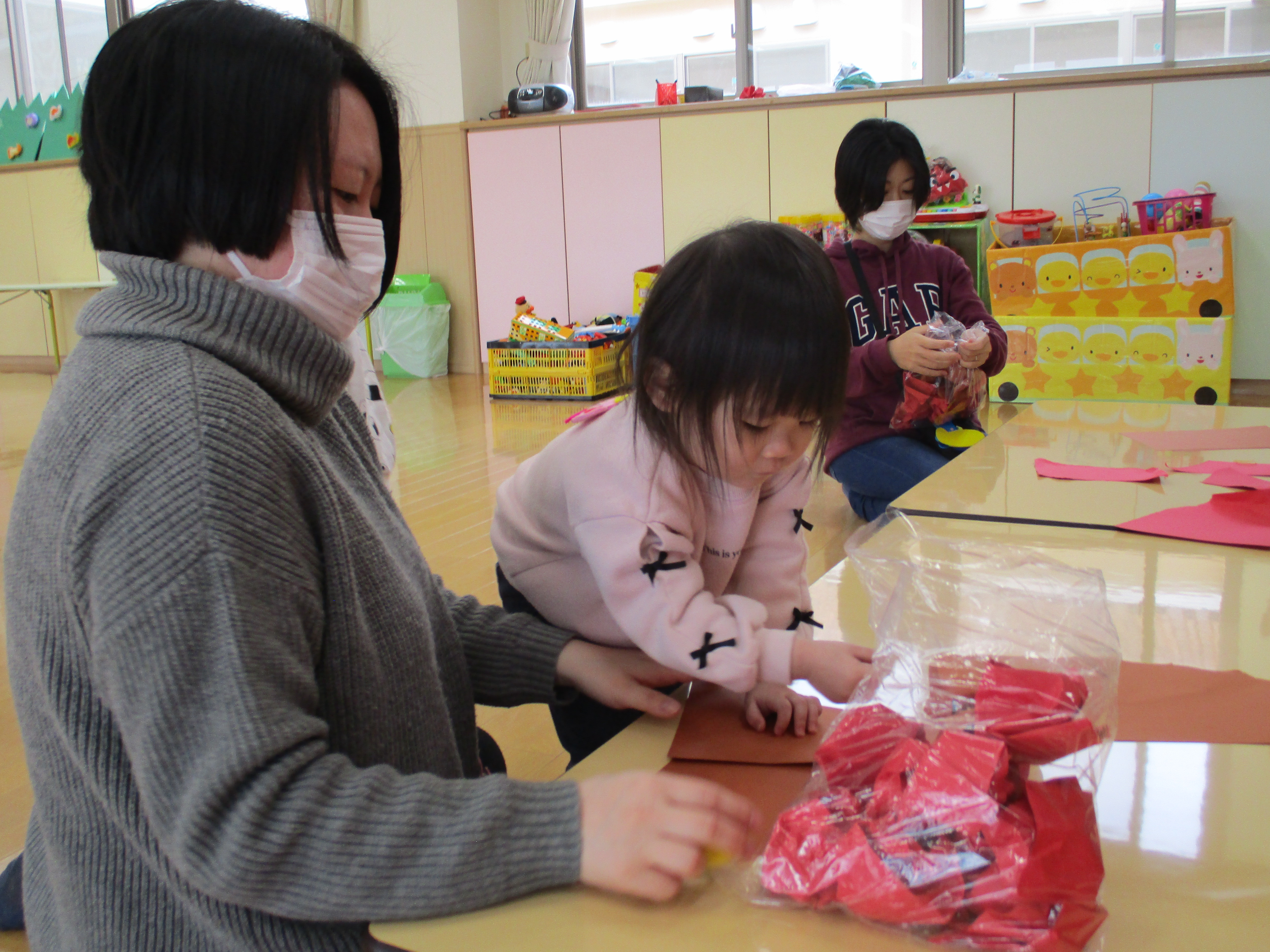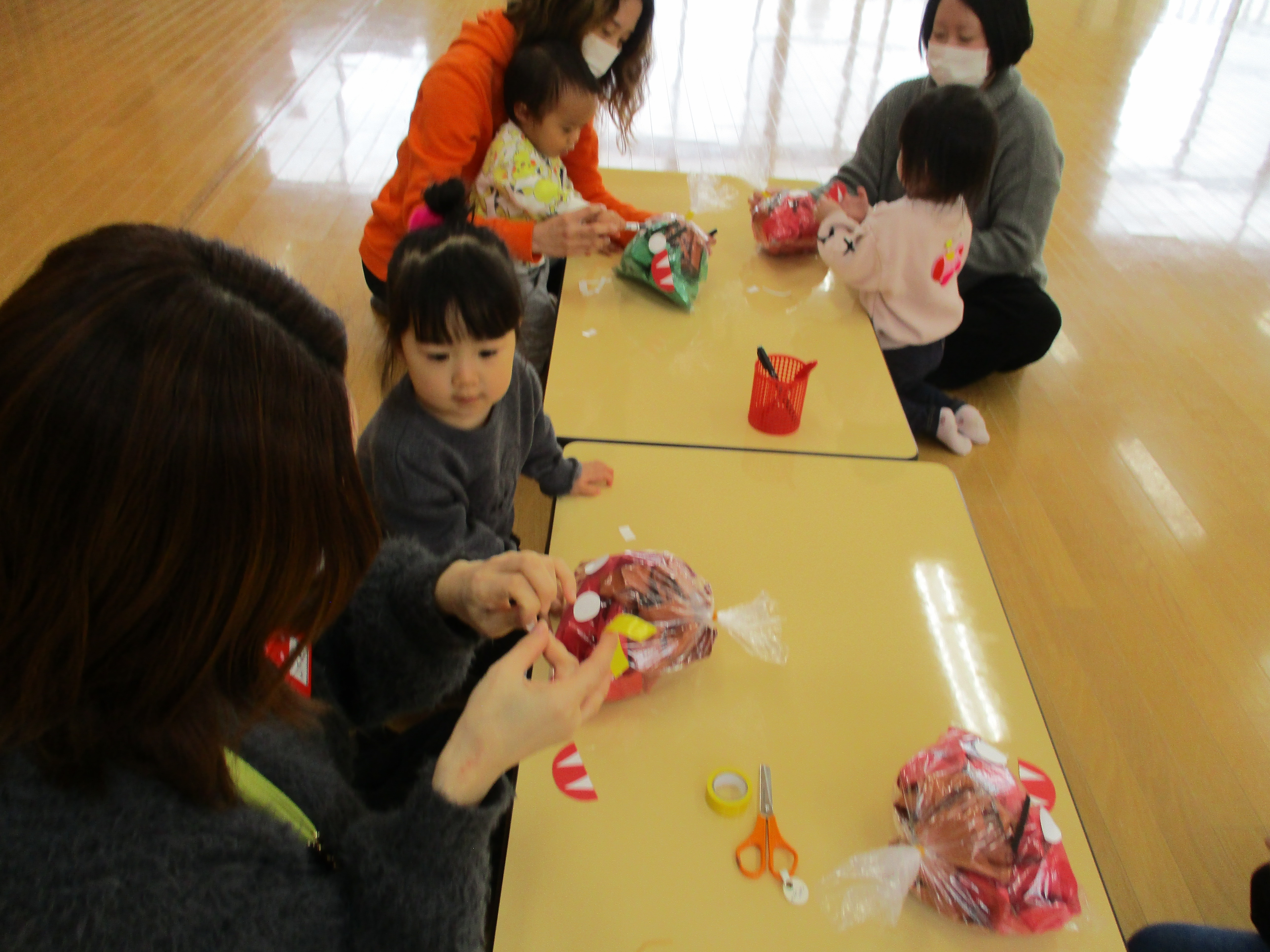 - 毎回 手遊び、絵本又は紙芝居の読み聞かせ、おやつがあります。